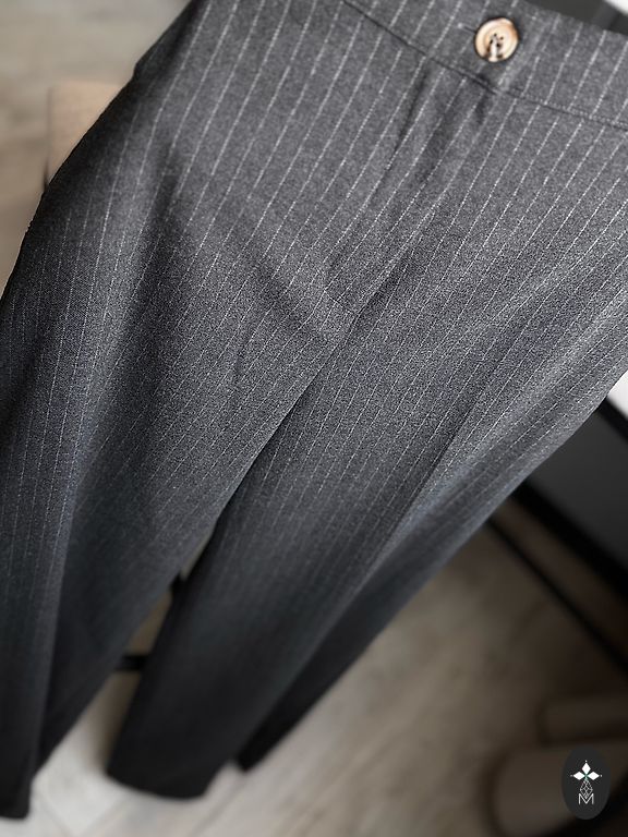 Nahaimitatsiooniga püksid, väikeste lõhikutega otstes. Vööümbermõõt - 70 cm Pikkus - 110 cm Puusad - 85 cm