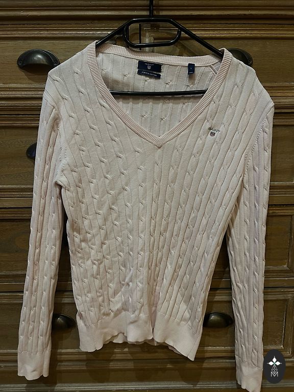 Свитер типа oversize, подойдет до XL. В жизни нежно-розовый цвет, настоящий цвет не удалось поймать.