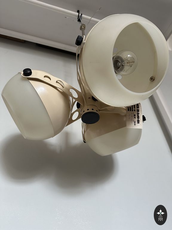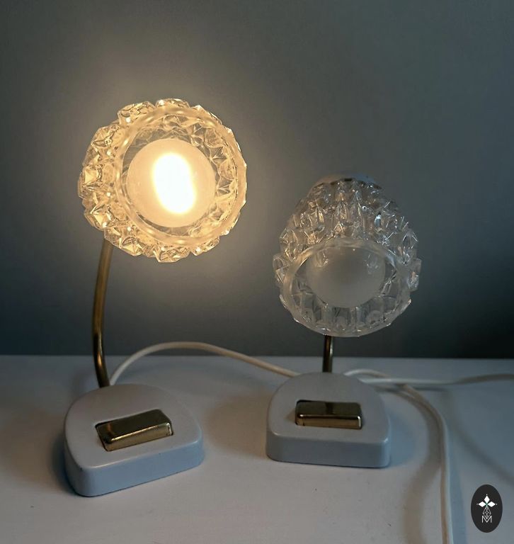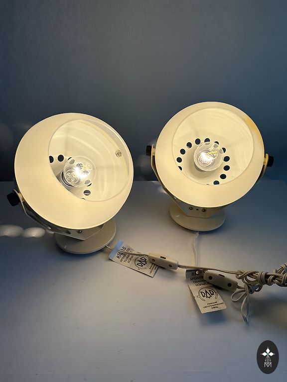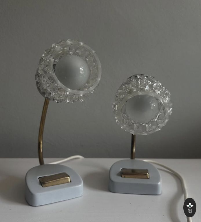 70ndate Sputnik ajastu lampid, üks neist ei põle - vajab remonti. Materjal: plastmass või bakeliit, klaas. Mõõtmed: 26,5x15cm