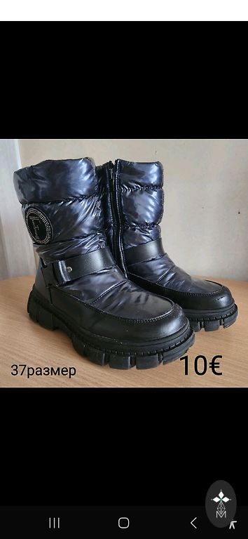 H&m размер 18/19. Согласно сайту h&m, размер 18/19 соответствует стопе длиной 11.1 см. Внутри минимальное утепление. Блестящий материал не поцарапан. Единственное, немного отошла краска с молний - видно на последнем фото. +доставка