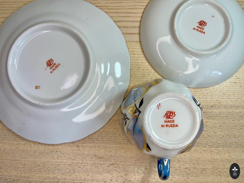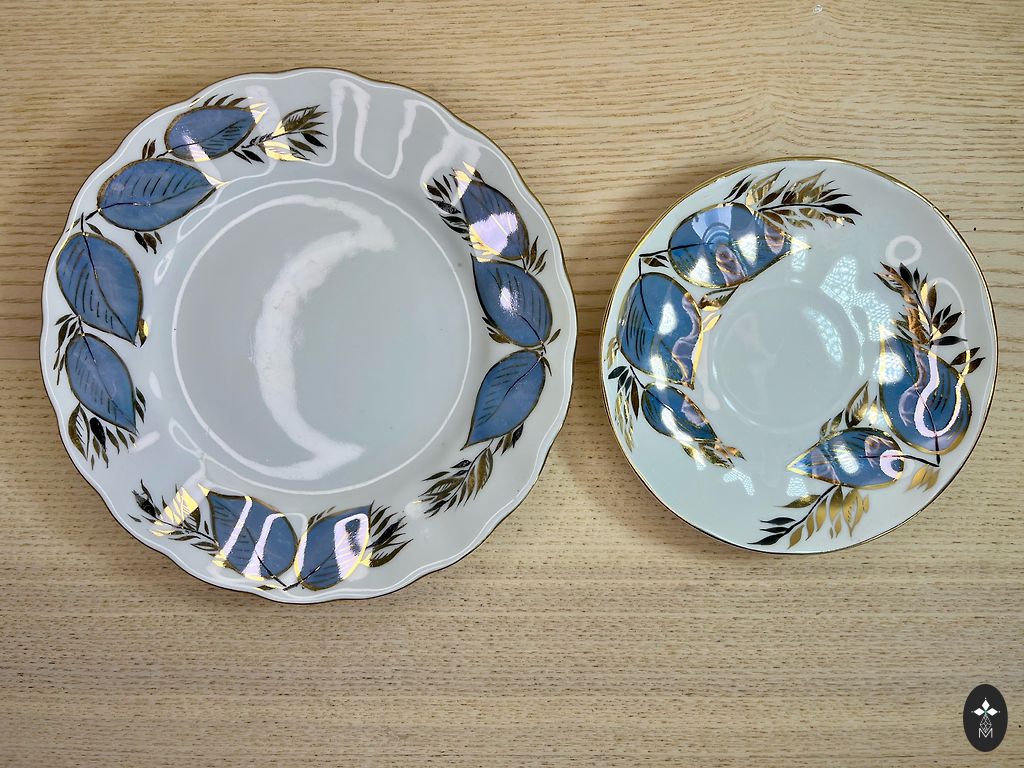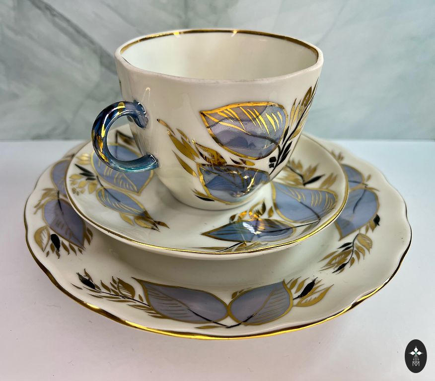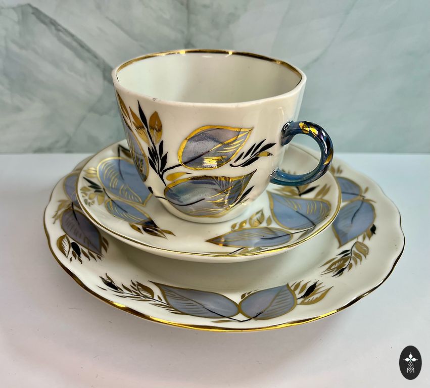 Тонкая фарфоровая кофейная чашка с блюдцем, позолота сохранена, трещин нет.