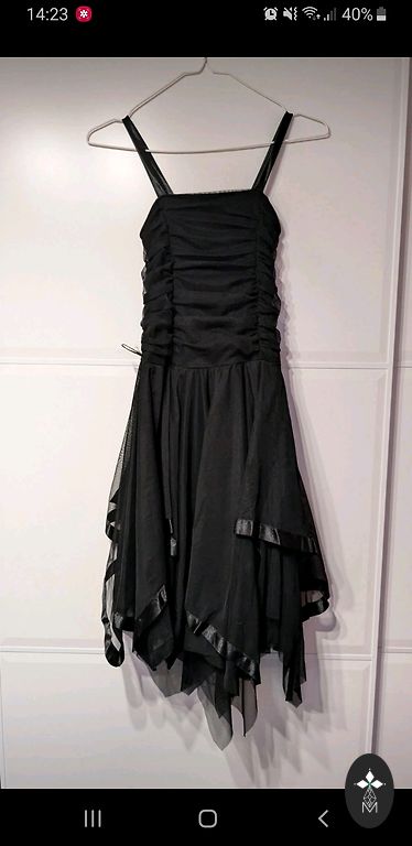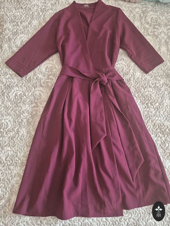 Suknelė su raukiniais ties juosmeniu ir viena rankove.