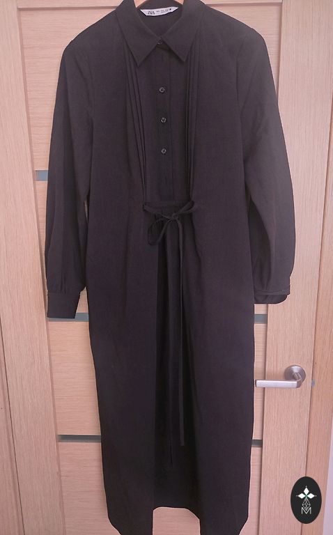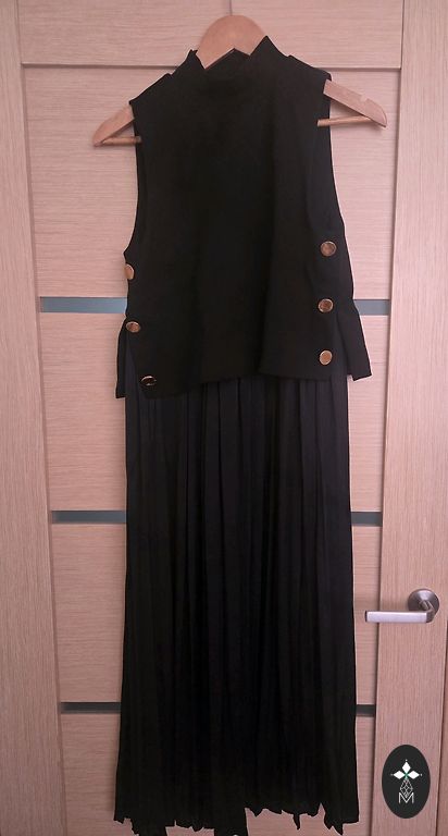 Rinnaümbermõõt ilma venitamiseta 84 cm, talje 74 cm ilma venitamiseta ja pikkus 82 cm, materjal venib.