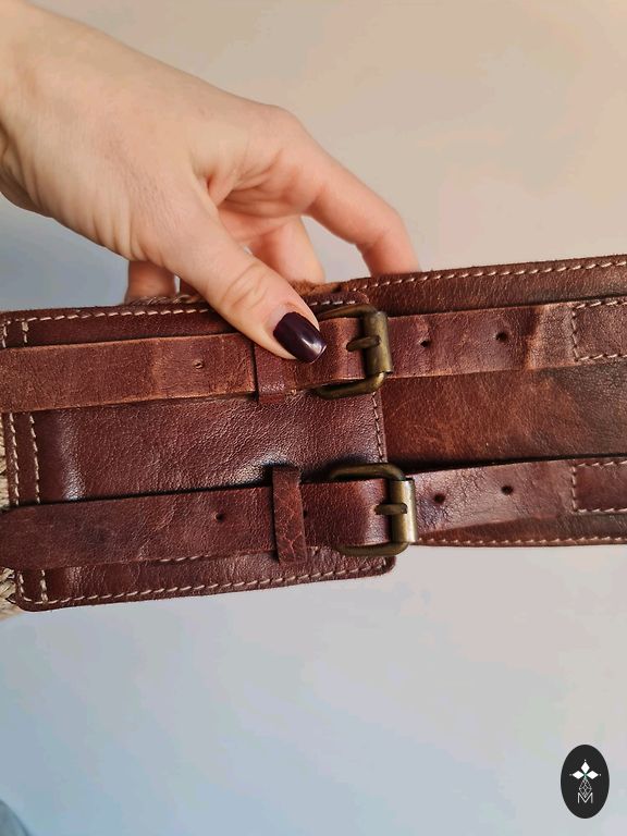 Красивая коричневая кожа с массивной металлической пряжкой и рельефным логотипом Diesel.
