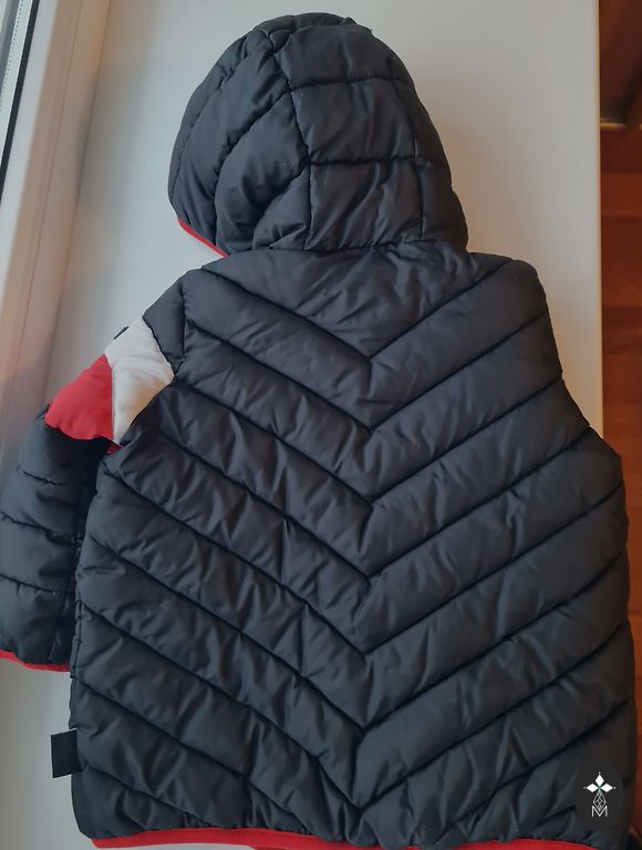 Užtrauktukas ir geros būklės. Trūkumas - audinys viduje gobtuvo susivėlęs. Gobtuvą galima nuimti ir, jei yra darbščios rankos, galbūt pakeisti kitu.