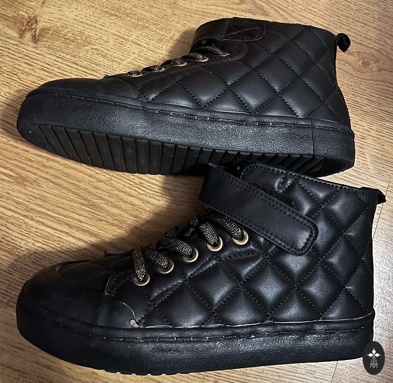 Vēl ļoti labā stāvoklī, melni un nedaudz ar spīdumiem, ar nelielu siltinājumu iekšpusē, stipri un veseli, bet uz viena zābaka purniņa ir neliels nodilums, praktiski nemanāms! Iekšējā zolīte 17-17.5 cm.
