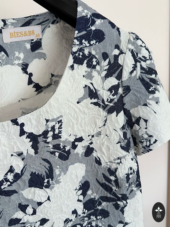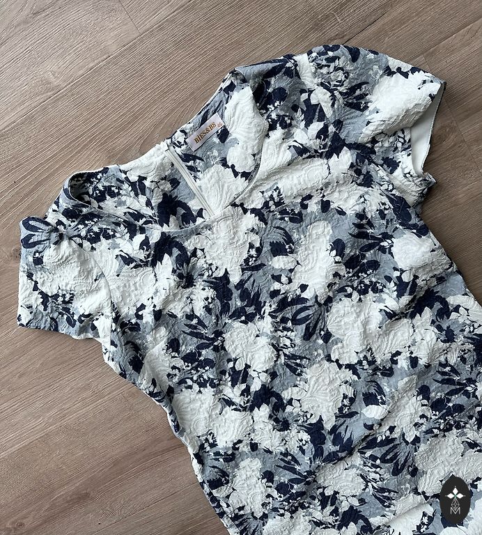 Платье на запах, завязывается слева только декоративно, но в талии не регулируется. Длина 106 см, ширина плеч 44 см, между подмышками 55 см, в талии резинка, максимум можно растянуть до 120 см в окружности, рукав 57 см. Платье не нужно гладить, постирайте и готово к носке.