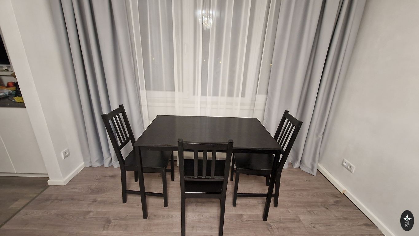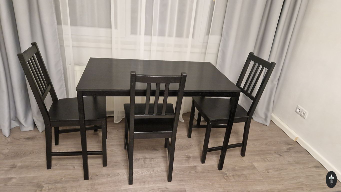 Laud kahe tooliga. Uue kauba seisund. Ostetud IKEA-st. Asub Riia kesklinnas, Krišjāņa Barona tänaval 24/26. Praktiliselt pole kasutatud.