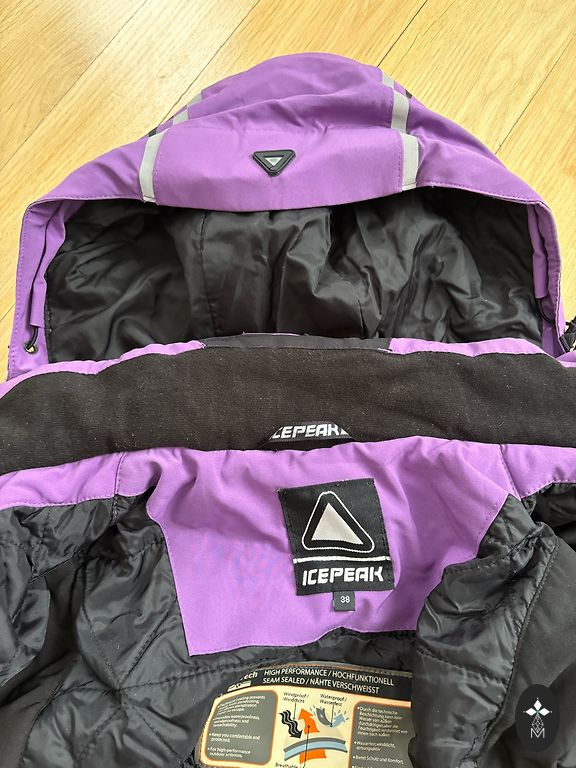 Selling women's mountain skiing jacket Icepeak, size 38, in good condition, with slight signs of wear. Many pockets, including a sleeve pocket for a ski-pass card. The jacket also has a Recco reflector.