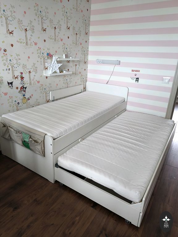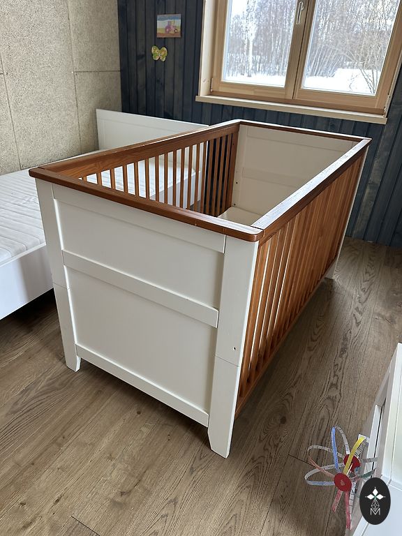 Продается двухъярусная кровать. На нижнем ярусе очень большой стол, на втором ярусе кровать. Металлический каркас и ламинированная столешница. На каркасе остались отпечатки и пятна от наклеек. Кровать была куплена подержанной. Находится в разобранном состоянии без матраса. Размеры: 1,0м x 2,1м и высота 1,87м. Доступно в Струтелах, 7 км от Яунпилса в сторону Тукумса!