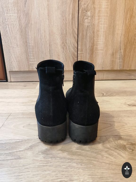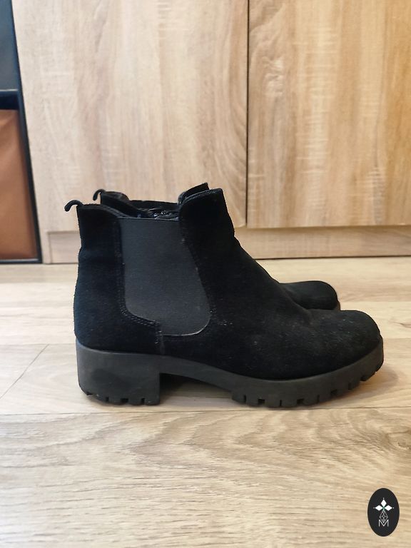 Elegantsad mustad sokitüüpi saapad. Ostetud H&M-st. Vähekasutatud, kuid heas seisukorras. Kontsa kõrgus 7,5 cm. Sobivad hästi kitsamate jalgade omanikele.