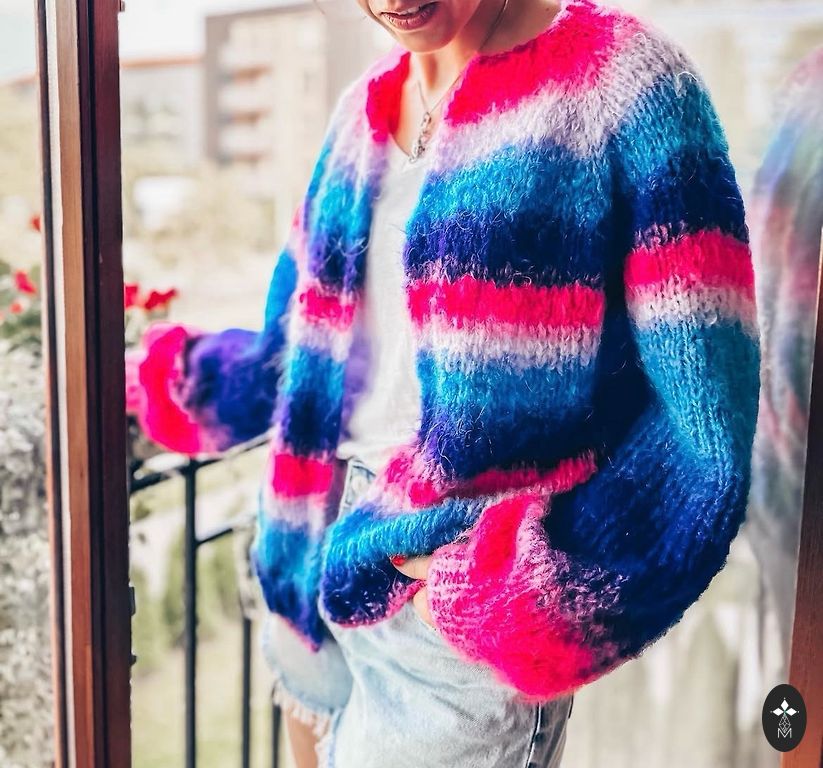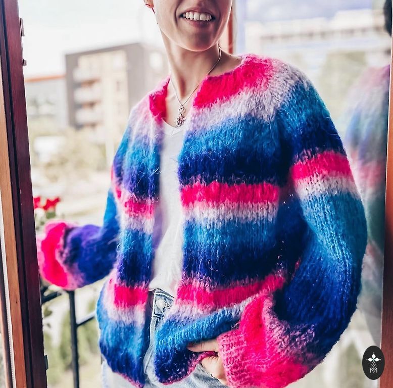 Įkvepiantis vaizdas, pačios megztas megztinis būtent iš šios siūlės, tik ryškiai dangaus mėlynos spalvos. Supratusi, kad smėlinė nebus mano spalva - perduodu sruogas toliau :) būkite kūrybingi!