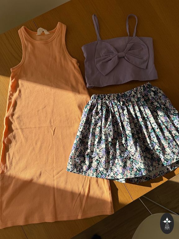 Новое платье для школы, штаны Zara 11-12 лет, спортивные брюки, серая куртка M&S.