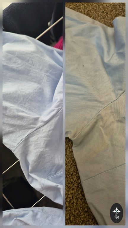 Sweat Clean effectively removes sweat and deodorant stains after the first use. (Underarms, collars, etc.)