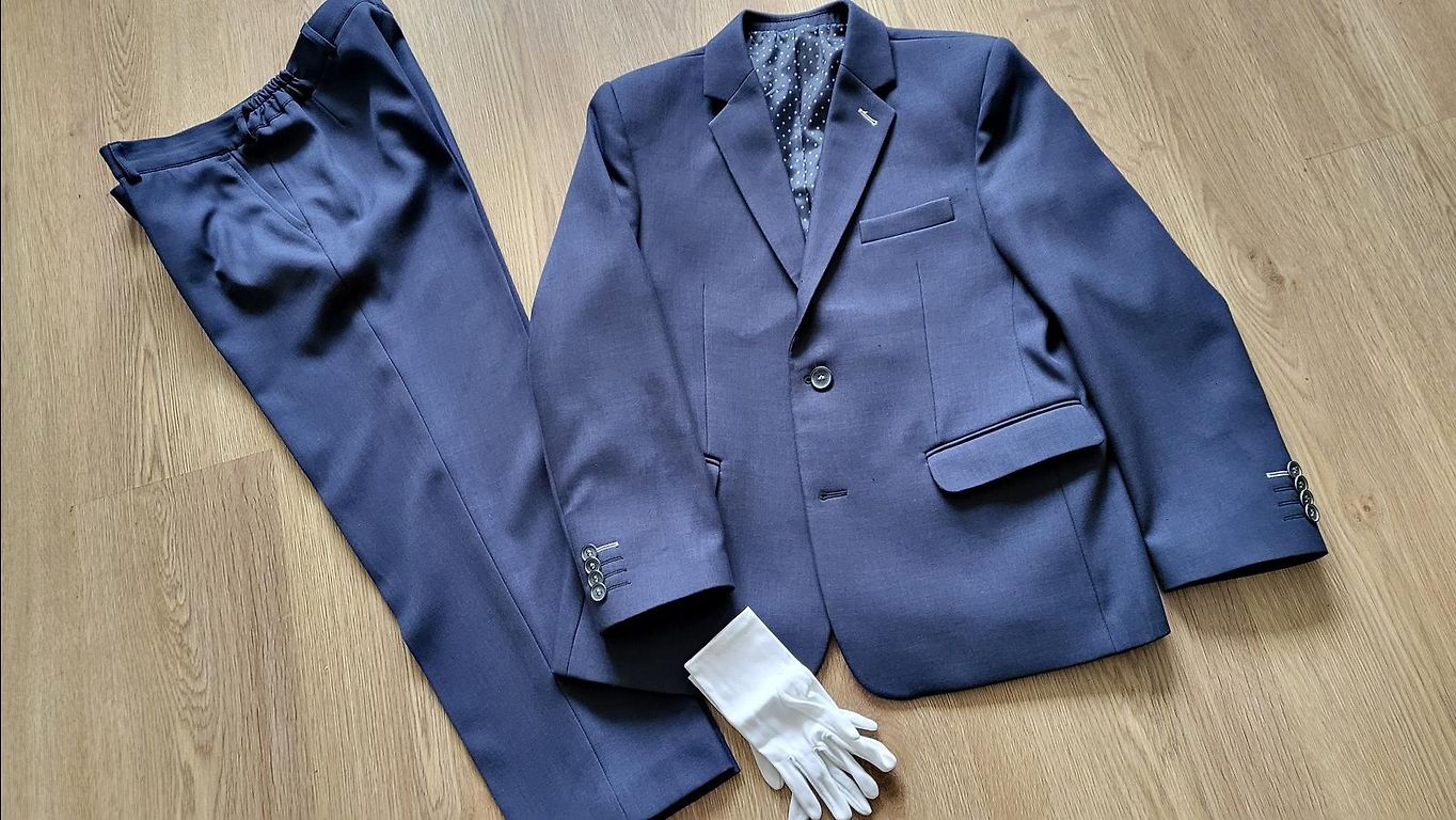 Jacket for a boy, worn a few times to a concert. Size indicated as 12 years (actual measurements: length from shoulder to bottom 53cm, sleeve length from shoulder 57cm, width underarms 40cm)