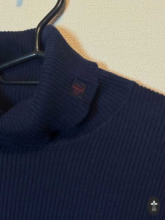 Vienas iš žinomiausių prekės ženklo modelių - Gaspard megztinis. Galima dėvėti kaip megztinį su sagomis nugaroje arba kaip švarkelį su sagomis priekyje. Plonas, bet šiltas, labai patogus. Dydis S, tačiau drąsiai gali dėvėti ir M dydžio merginos, nes tai oversize modelis. Gražus navy blue atspalvis. Be defektų.