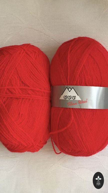 Nauji raudoni siūlai: sudėtis - 25% nailonas, 75% merino vilna. 8 kamuoliukai po 50 gramų. Iš viso 400 gramų. Buvo užsakyti iš Kinijos, spalva man netiko.