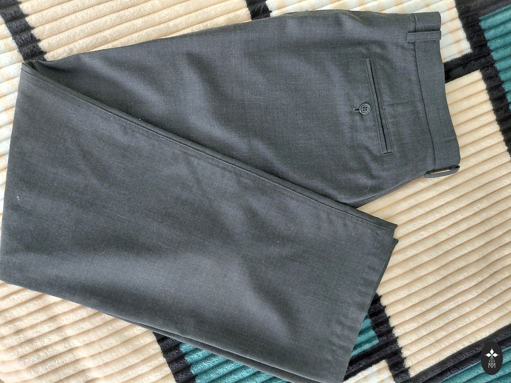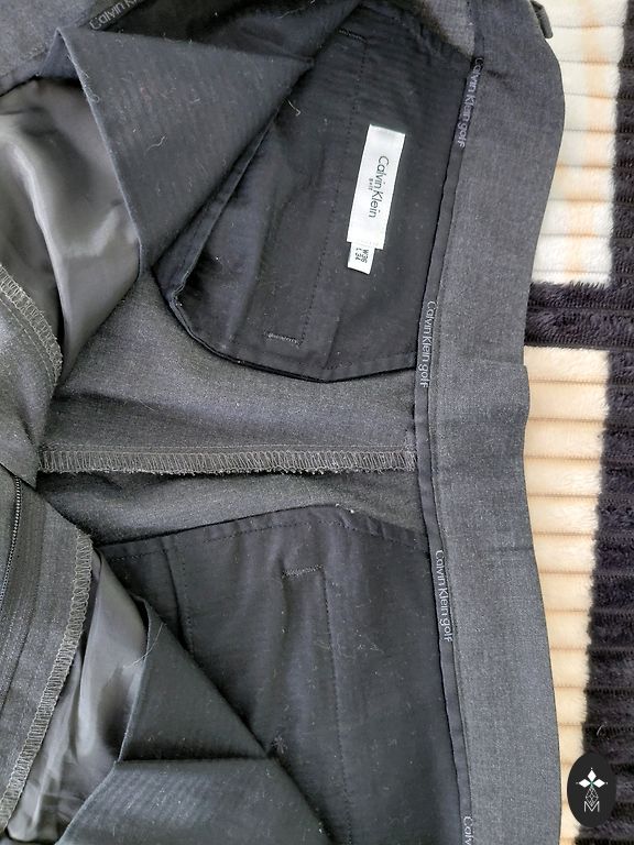 Parduodu kelnes, tamsiai pilkos su mažais langeliais. Dydis liemenyje 47x2, ilgis 107 cm. Trūkumas - gale trūksta spaudės. Dėvėtos kelis kartus tik.