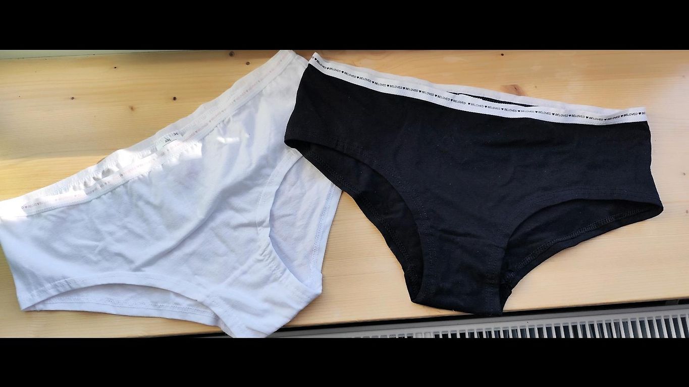 * Rozā biksēm uz vienas staras pleķis.