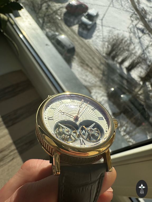 Качественная копия Franck Muller c реальным работающим турбийоном. Сталь 316L, сапфировые стёкла спереди и сзади .Часы ходят точно.