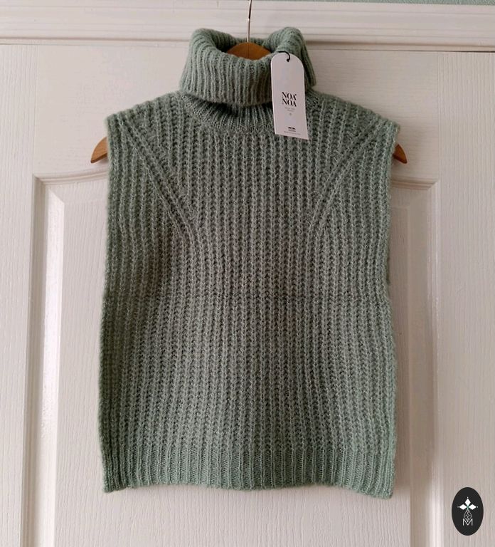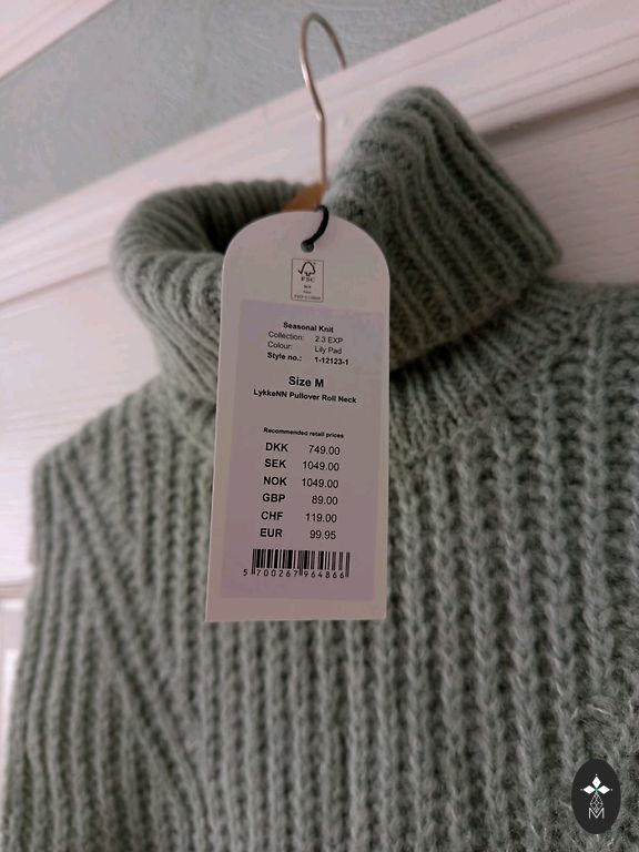 Pruun värv koos väikeste siniste niitidega. Kaasas on üks varusädelev nööp. Koostis: 33% ümbertöödeldud polüester, 30% akrüül, 20% polüester, 13% vill, 4% elastaan.