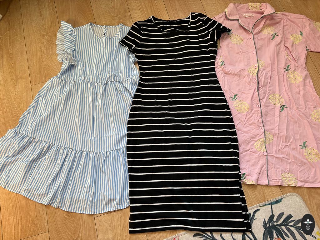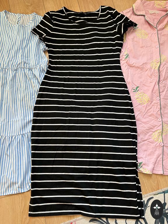 kaks kleiti, lühike pidžaama ja t-särk. erinevad firmad - h&m, george, dunnes. defekte ei ole, ilusad ja mugavad riided.