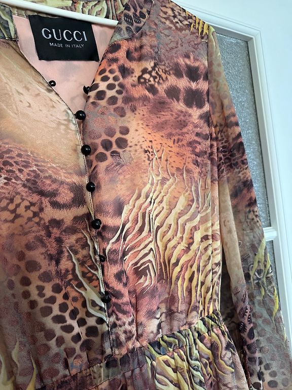 Poolläbipaistev pikk kleit leopardimustriga, kantud paar korda, suurepärases seisukorras.