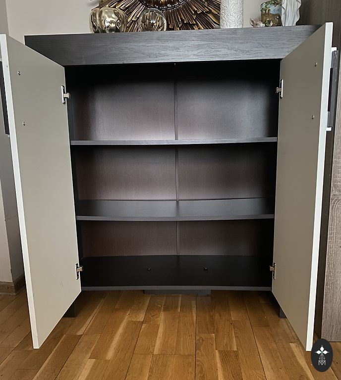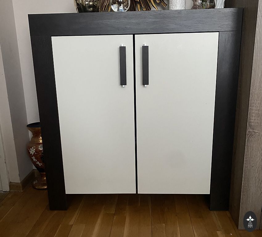 Simpatinis, stiklinis spinta su 2 lentynomis.