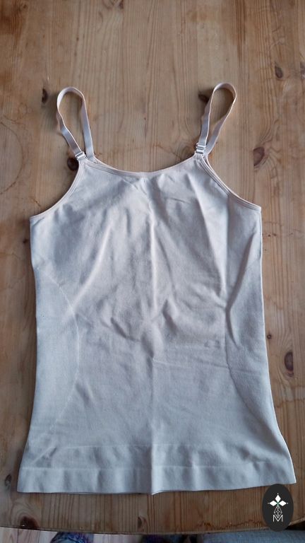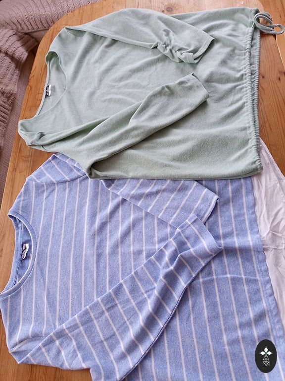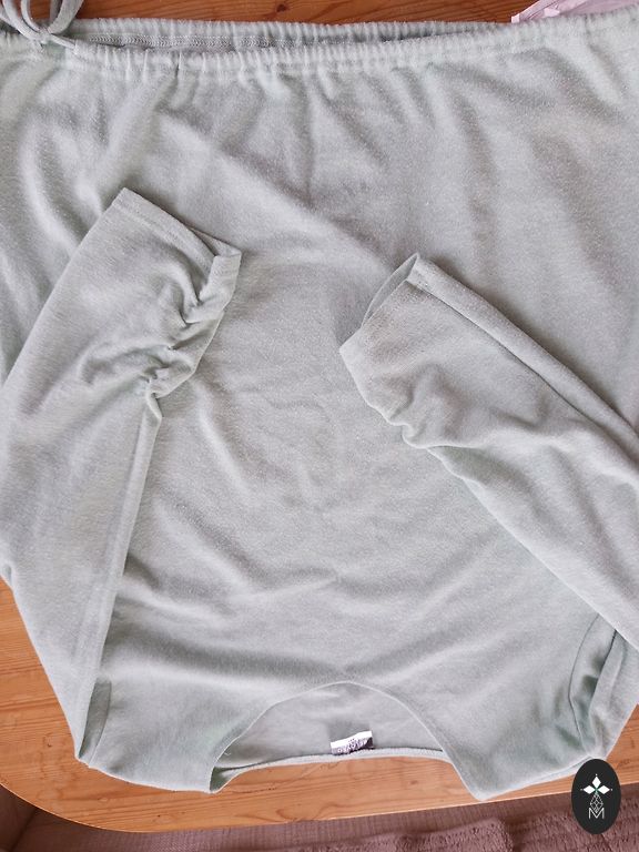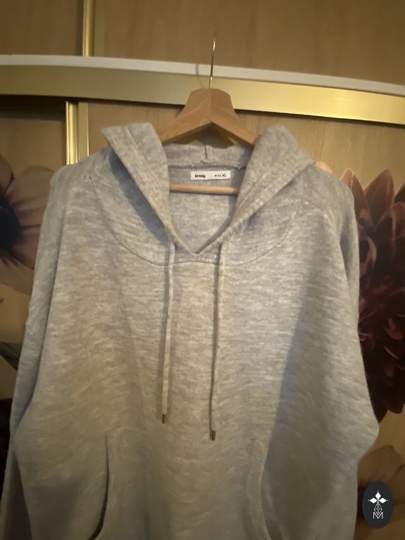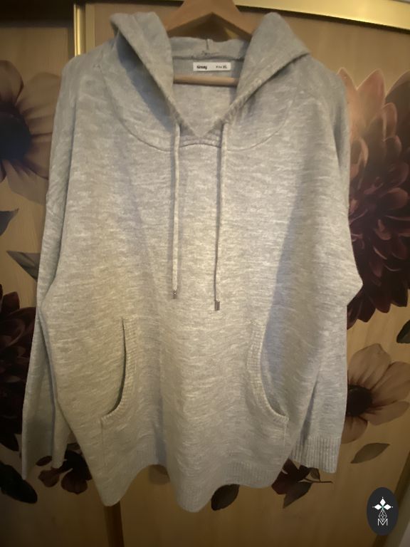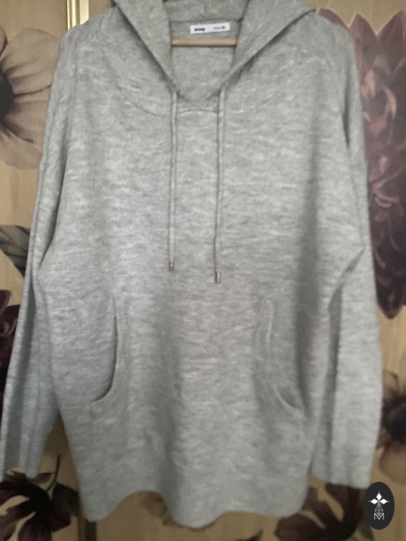 Minkštas megztinis. Krūtinės apimtis 130 cm, liemuo ir klubai 120 cm, ilgis 62 cm.