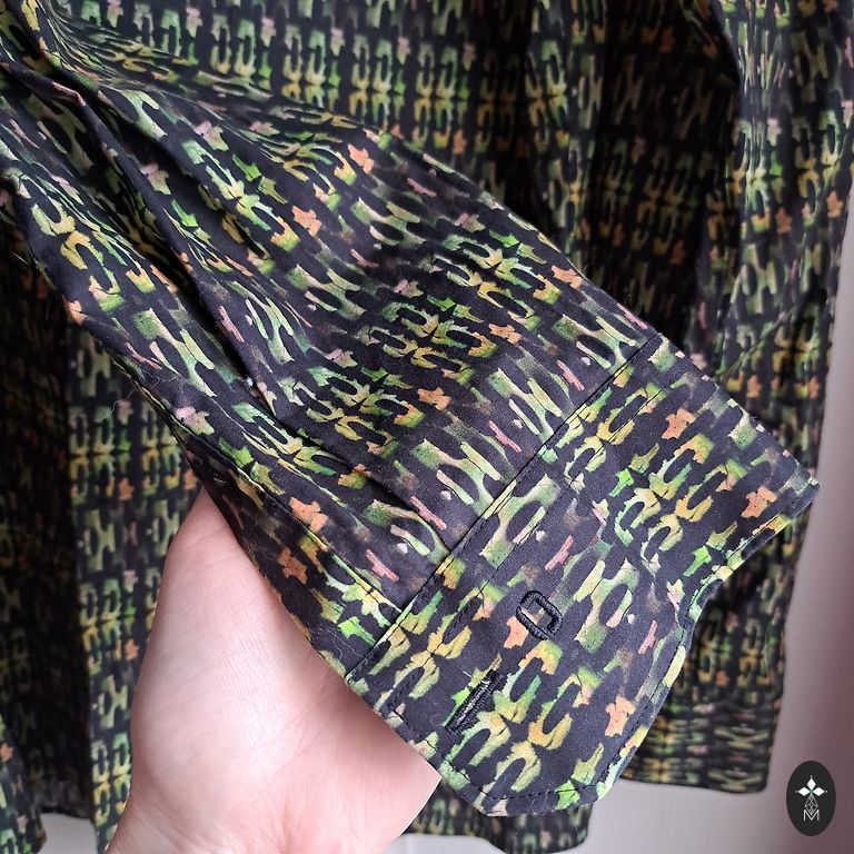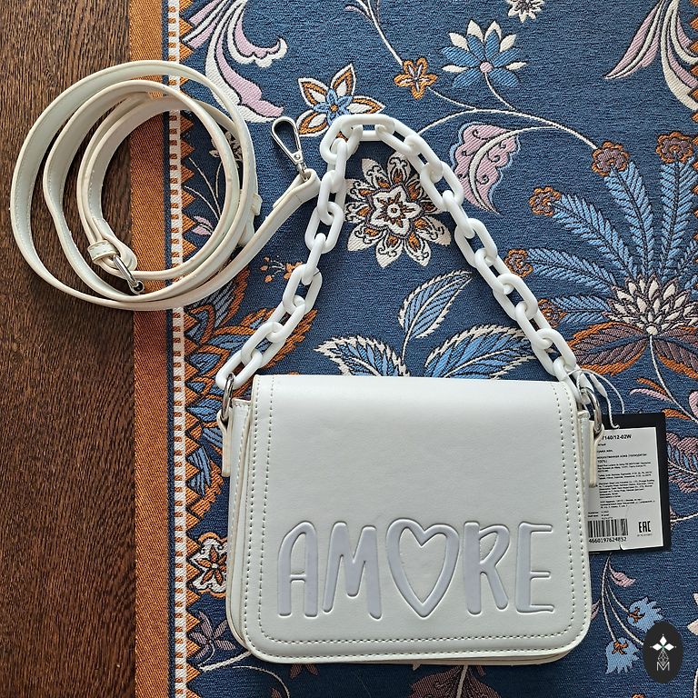Skaista čūskādas raksta somiņa, bez izteiktajiem vizuālajiem defektiem (normāla lietojuma pazīmes furnitūrai un siksnai). Izmērs 24×19 cm, diezgan ietilpīga, mīksta āda. Ir putekļu maisiņš.