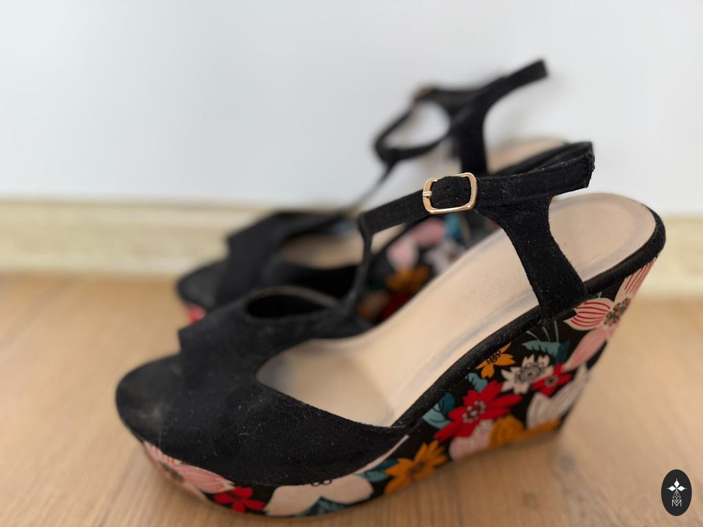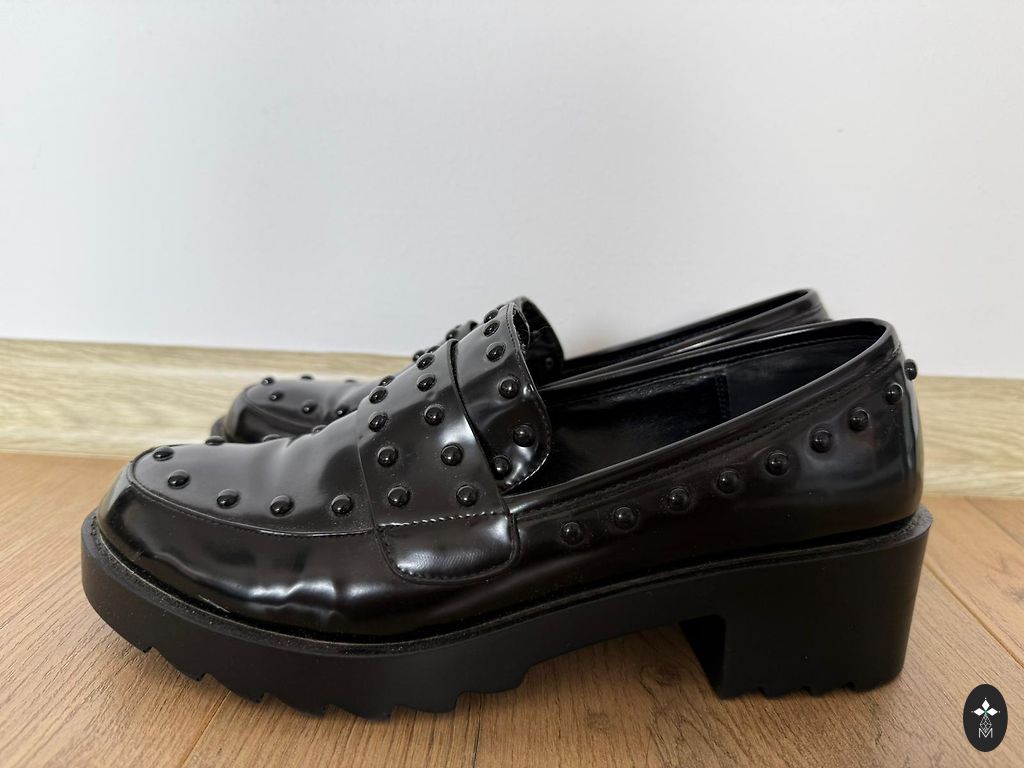 The cat has slightly chewed the shoelaces :), and there's a small stain; the laces can be replaced.