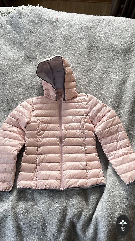 Kevadjope, pikkus 48 cm, varrukad 42 cm, külgedel taskud. Värv heledalt roheline mustaga.