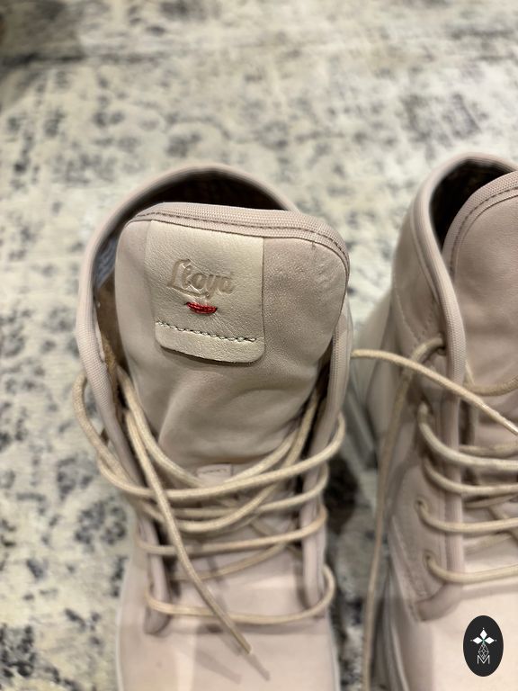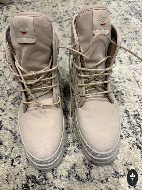 Müün väga stiilseid, elegantse disainiga poolsaapaid heledas toonis koos maomustriga aktsentiga.