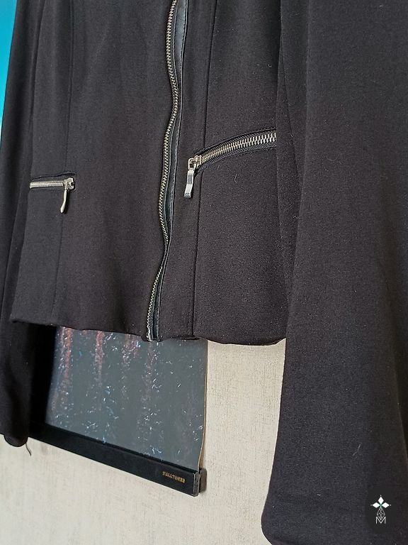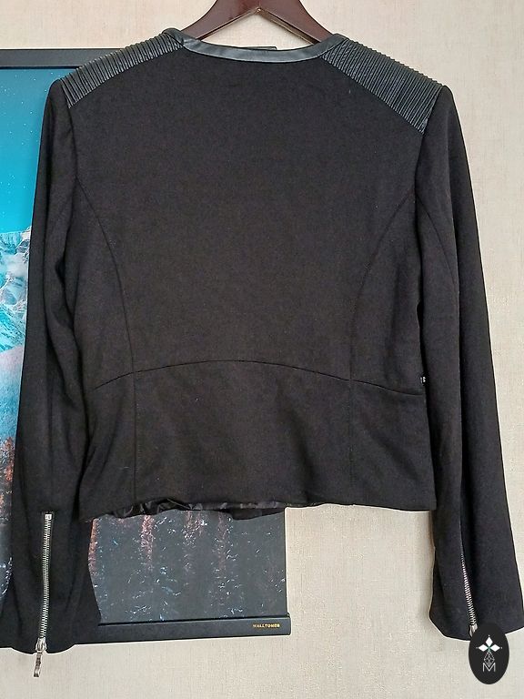 Detalės: Stilingas mandarinų apykaklė, krūtinės kišenė, kontrastingos tamsios sagos,