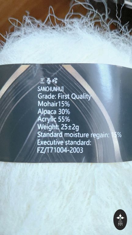 100% linane, väga pehme. Sobib käsitsi kudumiseks (kudumismasina jaoks liiga paks, ei ole kasutatud).