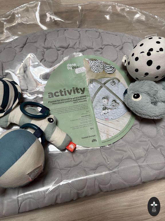 Imeline mängumatt mänguasjadega beebile avastamiseks. Nagu done by deer, väga vastupidav, ei ole lõtv. Kalad ja krokodill krõbisevad. Meie väikesele väga meeldis.