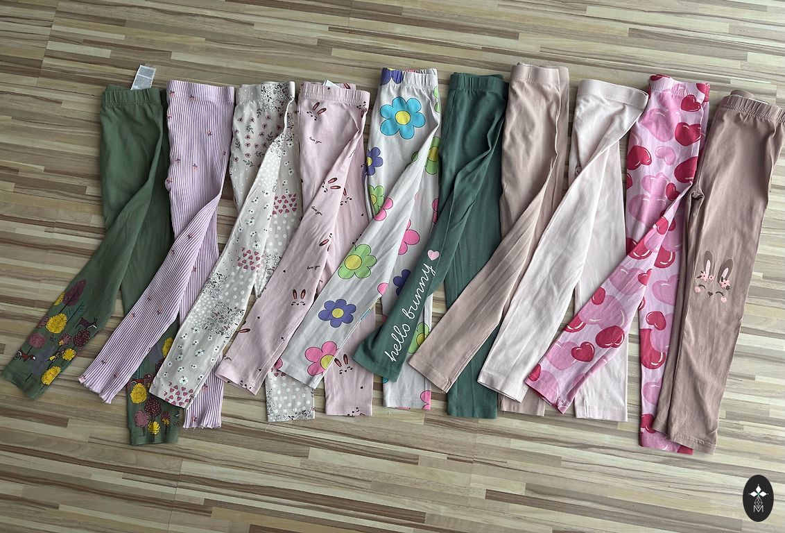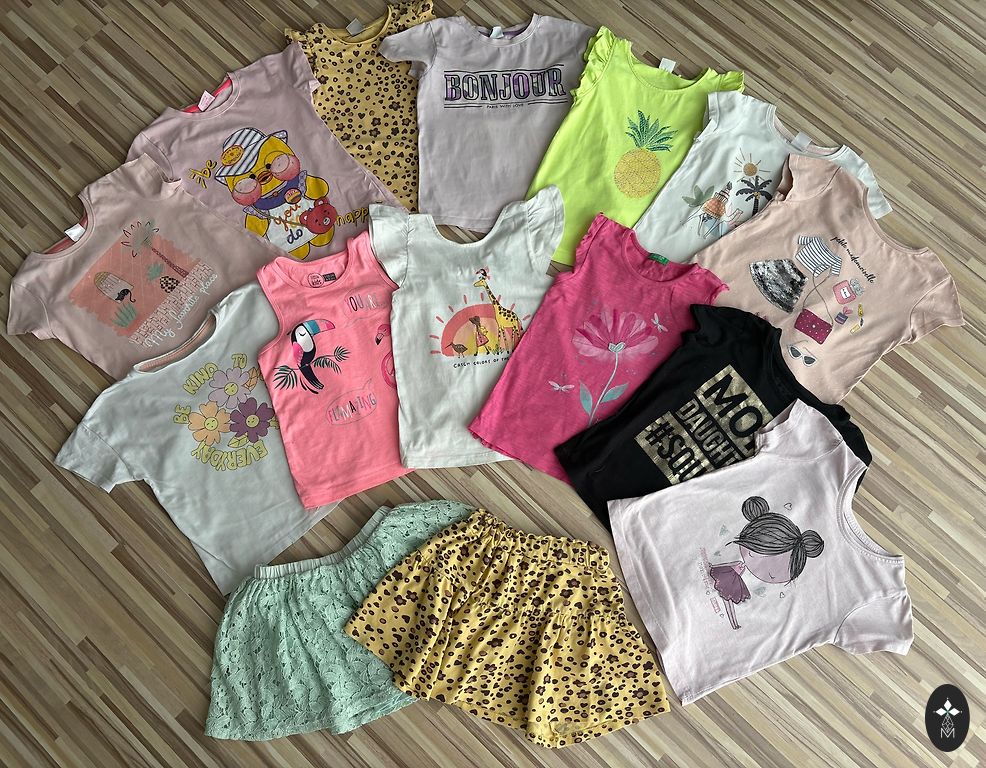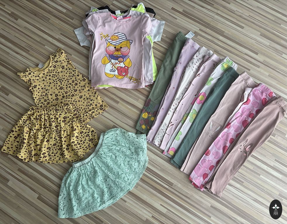 There are a few stains, not really visible in the pattern. Size 110/116.