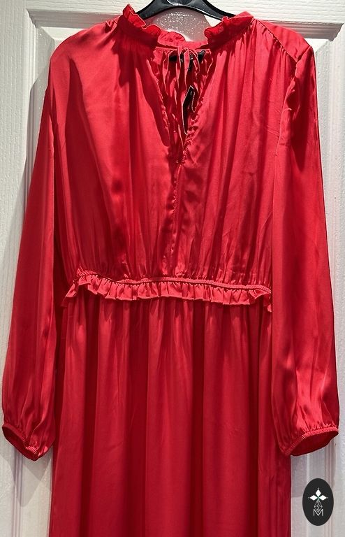 Pačios suknelės būklė labai gera, bet viduje, kur turėtų būti etiketė, mažas lopas. Matoma nuotraukoje.. negaliu rasti lipnios juostos.. labai lengva pataisyti ir nebus matoma, bet nešiojimui taip pat netrukdo, tai daugiau kaip pataisyti, kad nesimatytų!