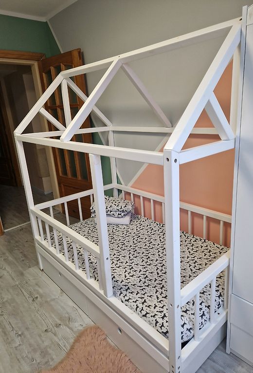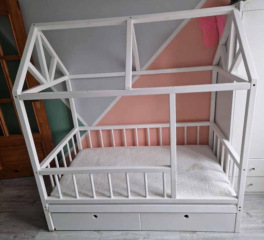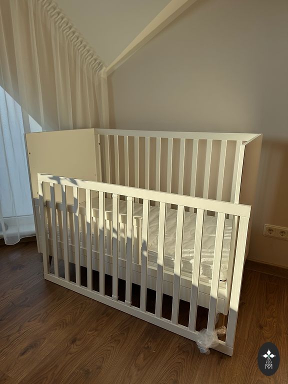 Müün beebivoodit koos madratsiga. Põhimõtteliselt on see nagu uus. Madratsit on kasutatud koos kattemadratsiga, mille annan samuti kaasa. Ainus voodi defekt on ühes kohas pisut “paistes” värv, mis pole silmatorkavalt nähtav (näha pildil). Kirjelduse voodi ja madratsi kohta saan saata privaatselt.