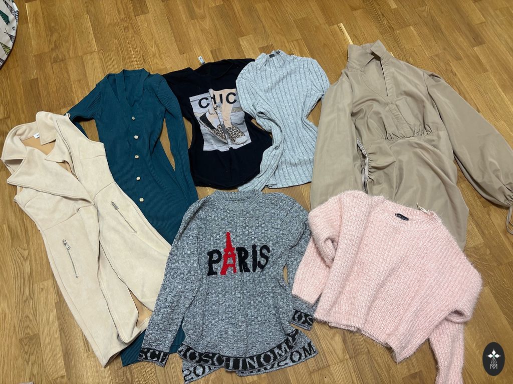 Įvairių prekės ženklų drabužiai yra geros, puikios būklės ir yra nauji. Megztiniai, striukės, palaidinės, marškinėliai. Viskas, kas matoma nuotraukoje, nieko nedalinu, kaina nurodyta už visą komplektą. Siunčiu per paštomatus.