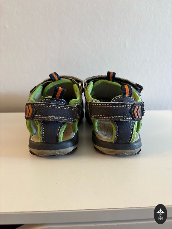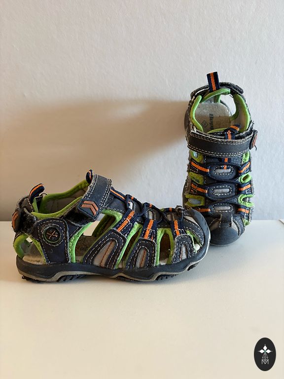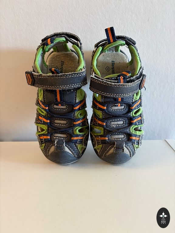 Aukštos kokybės ir lengvi batai su natūraliai pėdos judėjimui draugišku barefoot dizainu. Šiek tiek matomos naudojimo žymės paviršiuje, dėvėti tik viduje kaip darželio batai. Pėdos ilgis 161 mm.