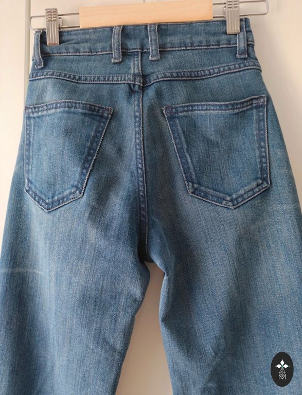 Mom stila džinsi ar taisniem galiem.