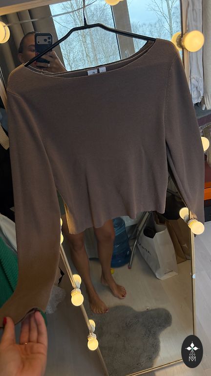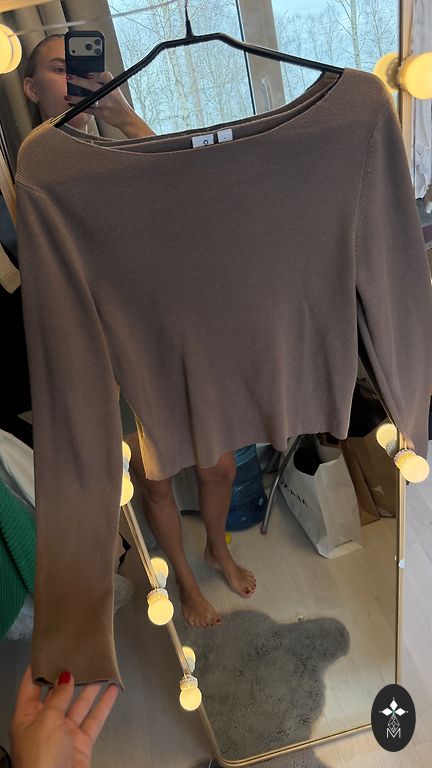 Minkštas megztukas su aukšta apykakle. Labai graži šviesiai geltona spalva. Tinka M ir L dydžiams. Krūtinės apimtis 88 cm (netempiant), ilgis 57 cm, rankovė 56 cm.