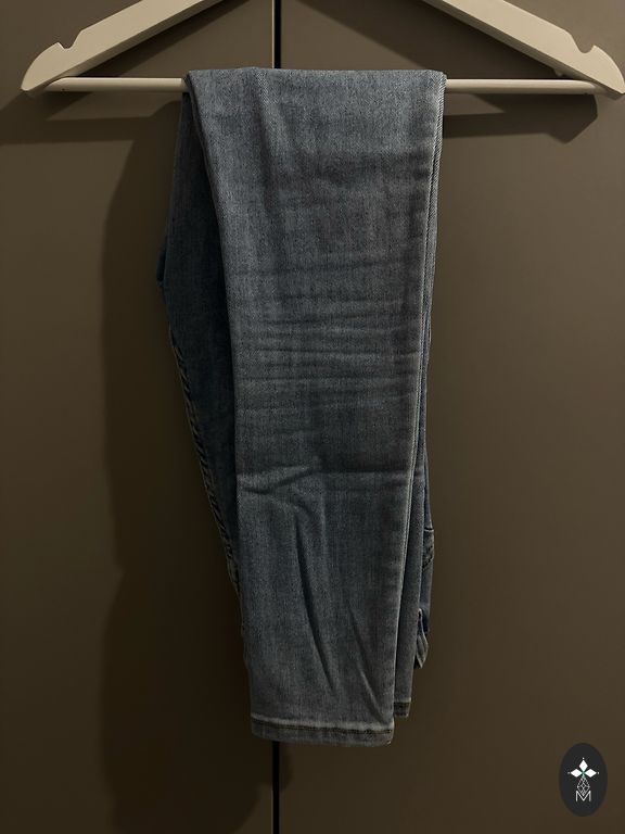 Size 36/38 will do. Mint color. Banana-style pants.