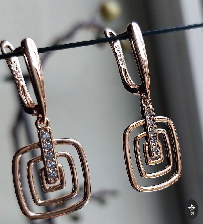 Uued romantilised kõrvarõngad smaragdrohelist ja safiirsinist tooni tsirkoonidega, kõrvarõngad 14K kullakattega (585 rg roosa kuld). Kõrvarõngastel on 585 pitser kinnitusel. Kõrvarõngad sobivad nii pidulikuks sündmuseks kui ka igapäevaseks kandmiseks. Klassikalised. Roosa kulla 585 kate ei põhjusta allergiat, on vastupidav kriimustustele ja plekkidele. Pikkus koos kinnitusega - 4 cm
