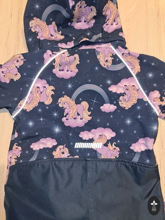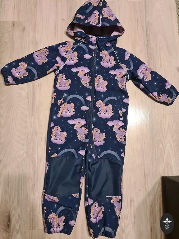 Pavadinimas: softshell pavasariui/rudeniui. Vėjo ir vandens nepraleidžiantis. 86 dydis su 6 cm rezervu. Ant dešinės kojos apačios yra keletas dėmių, kurių negaliu išskalbti (pridedu nuotrauką).