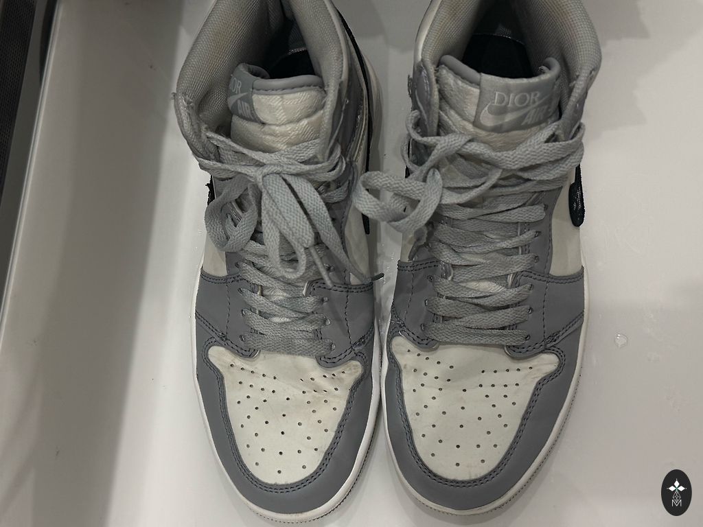 On mõned määrdunud kohad ja ühel jalatsil on ees paelte juures natuke lahti tulnud niit, kuid kandes seda ei ole näha.