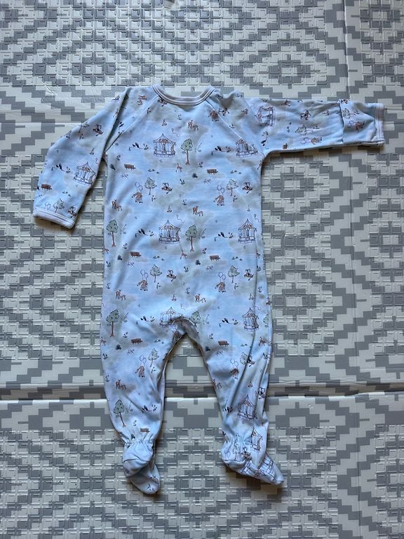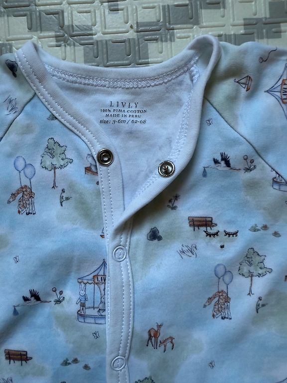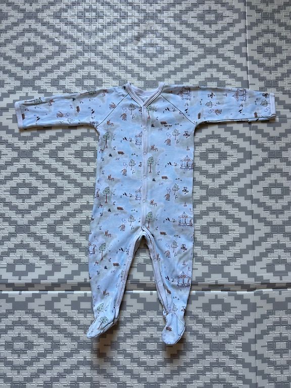 Yra dviejų rūšių striukės, romperis, kepurė ir dvi poros pirštinių.