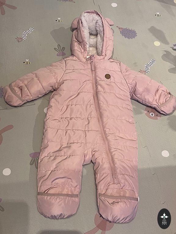 Soft pink spring romper with a slight fleece insulation for a newborn girl. 📦 Delivery is paid by the buyer