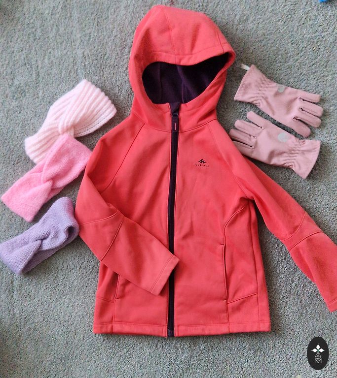 Size 104 jacket. The jacket has a thin fleece inside, making it warm.